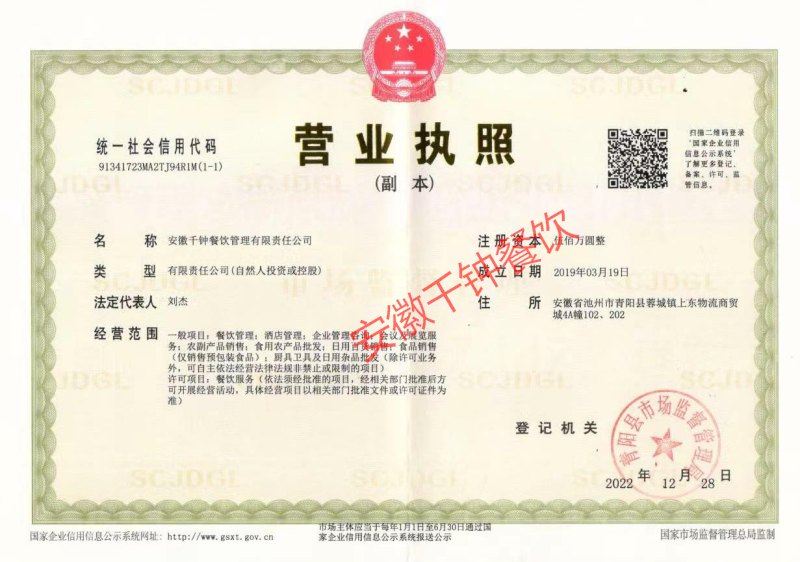 安徽千鐘餐飲管理有限責(zé)任公司主要經(jīng)營(yíng):正餐服務(wù)、餐飲企業(yè)管理咨詢(xún)、農(nóng)產(chǎn)品、食品、文具用品、建筑材料(不含危險(xiǎn)化學(xué)品>批發(fā)零售。經(jīng)過(guò)兩年來(lái)的發(fā)展,安徽千鐘餐飲現(xiàn)下設(shè)池州鐘興餐飲管理有限責(zé)任公司、池州鐘順餐飲管理有限責(zé)任公司、安徽鄉(xiāng)下菜配送有限公司等三個(gè)子公司,每日承接16000余人次的供餐服務(wù)和58家食堂的食材及餐飲工器具的配送業(yè)務(wù)﹔公司現(xiàn)有員工262人,其中:技術(shù)人員102人,中專(zhuān)以上學(xué)歷106人。