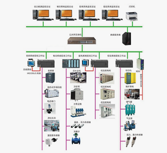 動(dòng)力能源集控系統(tǒng)是整個(gè)工業(yè)廠房動(dòng)力能源的監(jiān)控管理中心,應(yīng)要應(yīng)用于制藥廠、煙廠、電子潔凈廠房等區(qū)域;其可實(shí)現(xiàn)管理與控制數(shù)據(jù)一體化,各分、子系統(tǒng)的高度集成,無(wú)人值守全自動(dòng)控制,能源優(yōu)化組合等功能;其監(jiān)控的子系統(tǒng)可包含以下系統(tǒng):生活熱水子系統(tǒng)、變配電子系統(tǒng)、空壓(真壓)子系統(tǒng)、制冷子系統(tǒng)、空調(diào)子系統(tǒng)、熱力子系統(tǒng)、給排水子系統(tǒng)、天然氣子系統(tǒng)、工廠工藝?yán)鋮s水子系統(tǒng)、鍋爐子系統(tǒng)等。