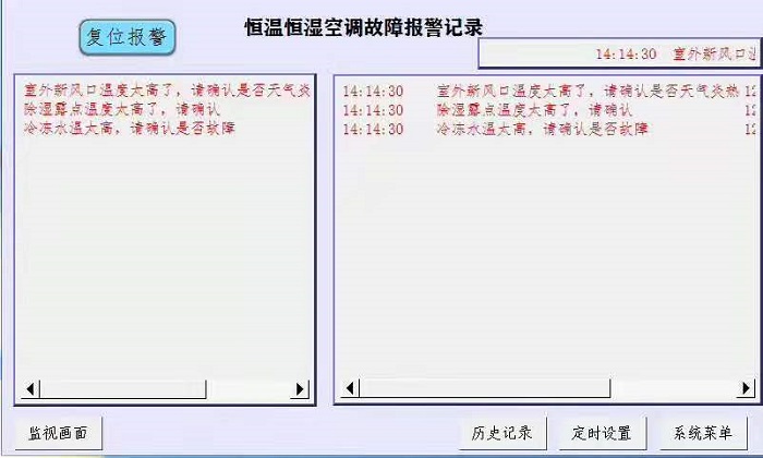 恒溫恒濕空調(diào)系統(tǒng)由控制器、人機(jī)界面、變頻器、溫度傳感器,溫濕度傳感器,水閥執(zhí)行器、風(fēng)閥執(zhí)行器、高溫?cái)嗦菲?、風(fēng)壓開(kāi)關(guān)等組成。