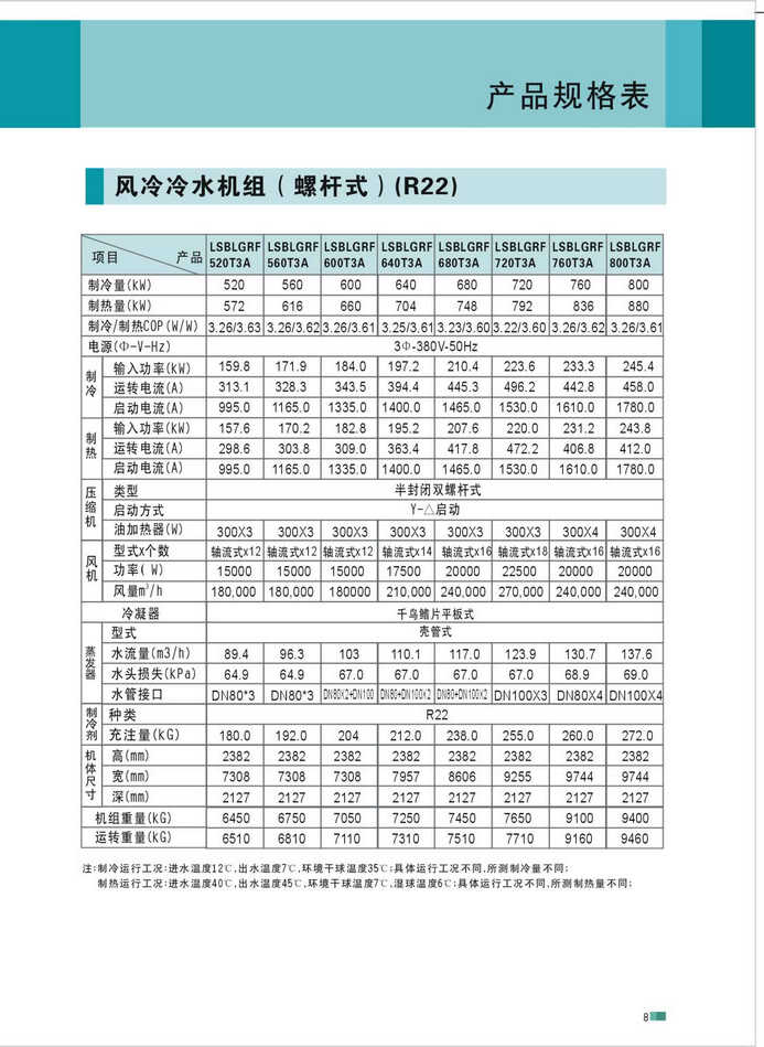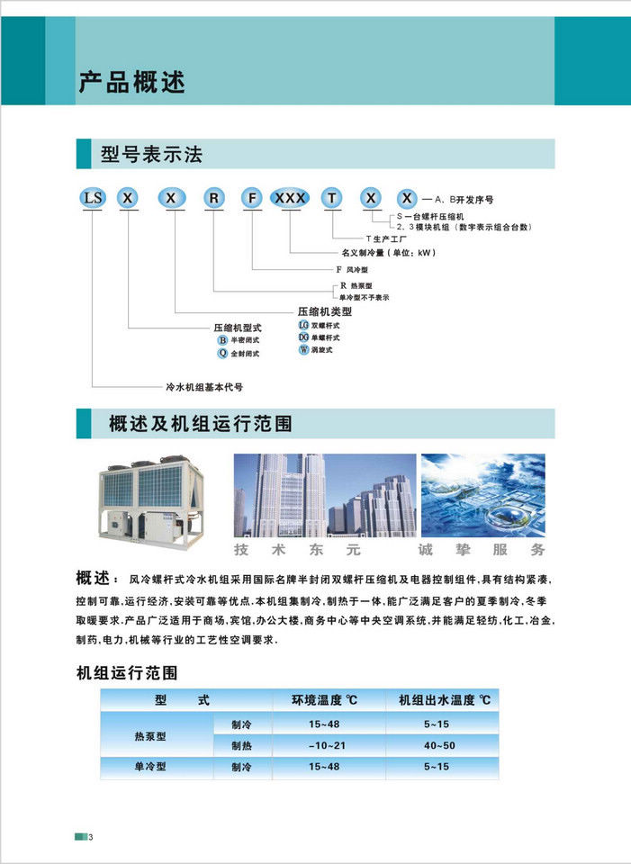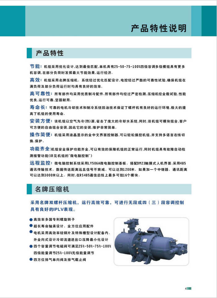 產(chǎn)品介紹:風(fēng)冷螺桿模塊機(160KW-240KW) 采用新環(huán)保冷媒R-134a 采用日本進口三菱電機專業(yè)生產(chǎn)的單螺桿式壓縮機,使得高低壓之間串氣減小至極小, 保證機組低噪音、平穩(wěn)性和高可靠性 雙螺桿式采用壓差方式給油,無需外加油泵 人性化的SIEMENS微電腦控制系統(tǒng),并可實現(xiàn)遠程監(jiān)控功能 液晶屏幕顯示(標配) 涂裝精美大方,不易掉色及腐蝕 制冷及制暖效率高,適合寬氣候區(qū)域使用...